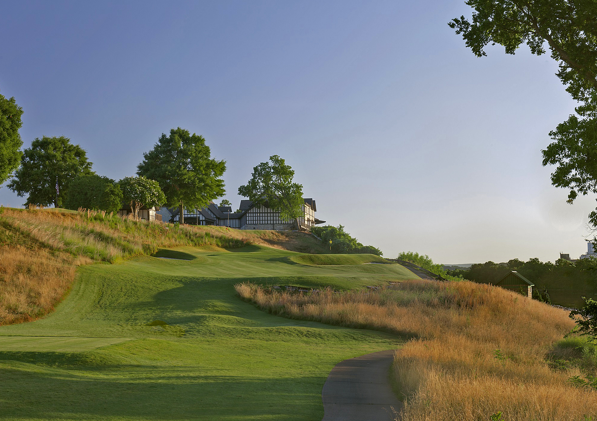 Finishing the front nine along the Tennessee River, the uphill par three ninth may strike terror on days when the wind is coming out of the north.  A left side bailout leaves no easy up and in for par.