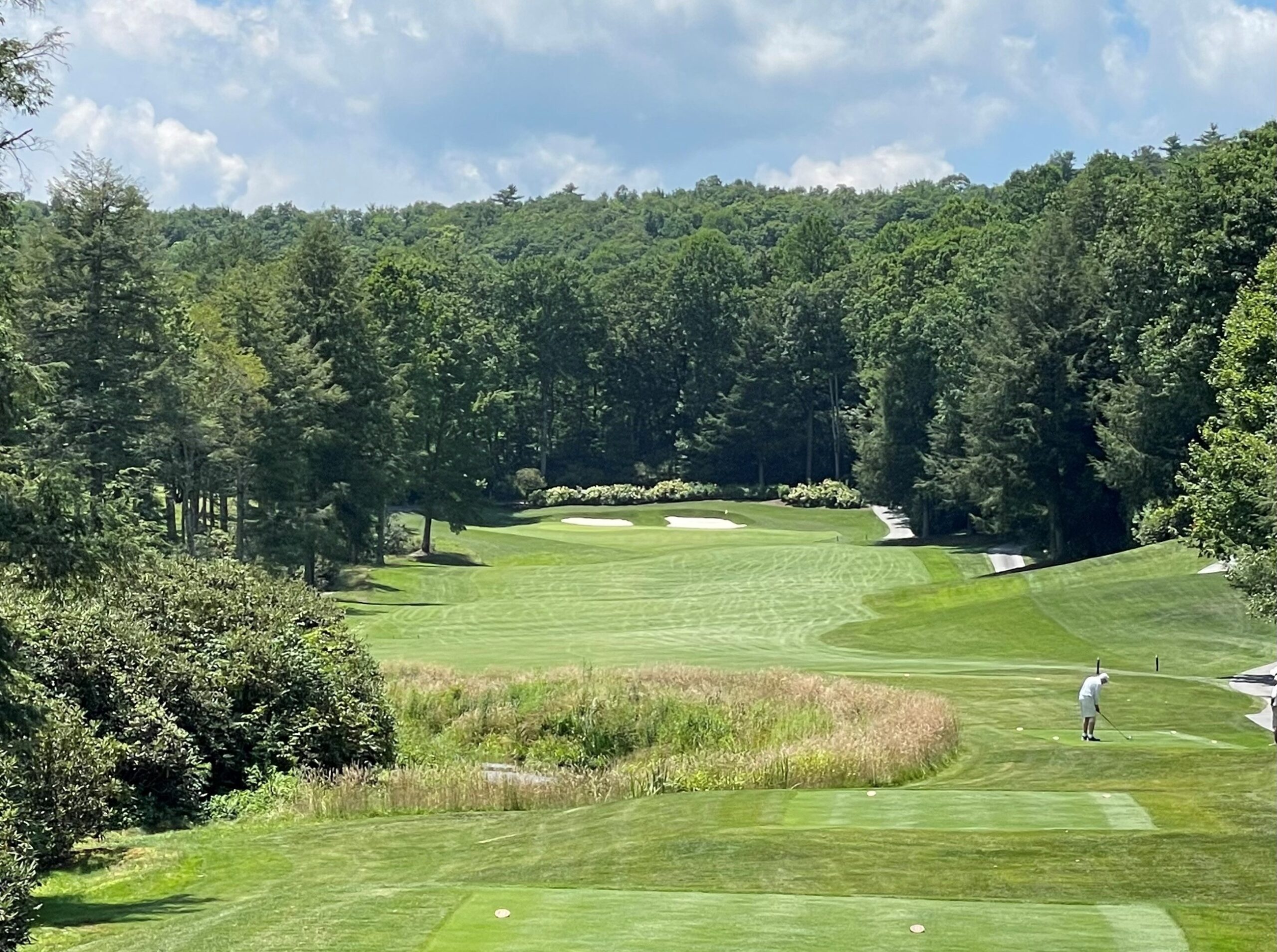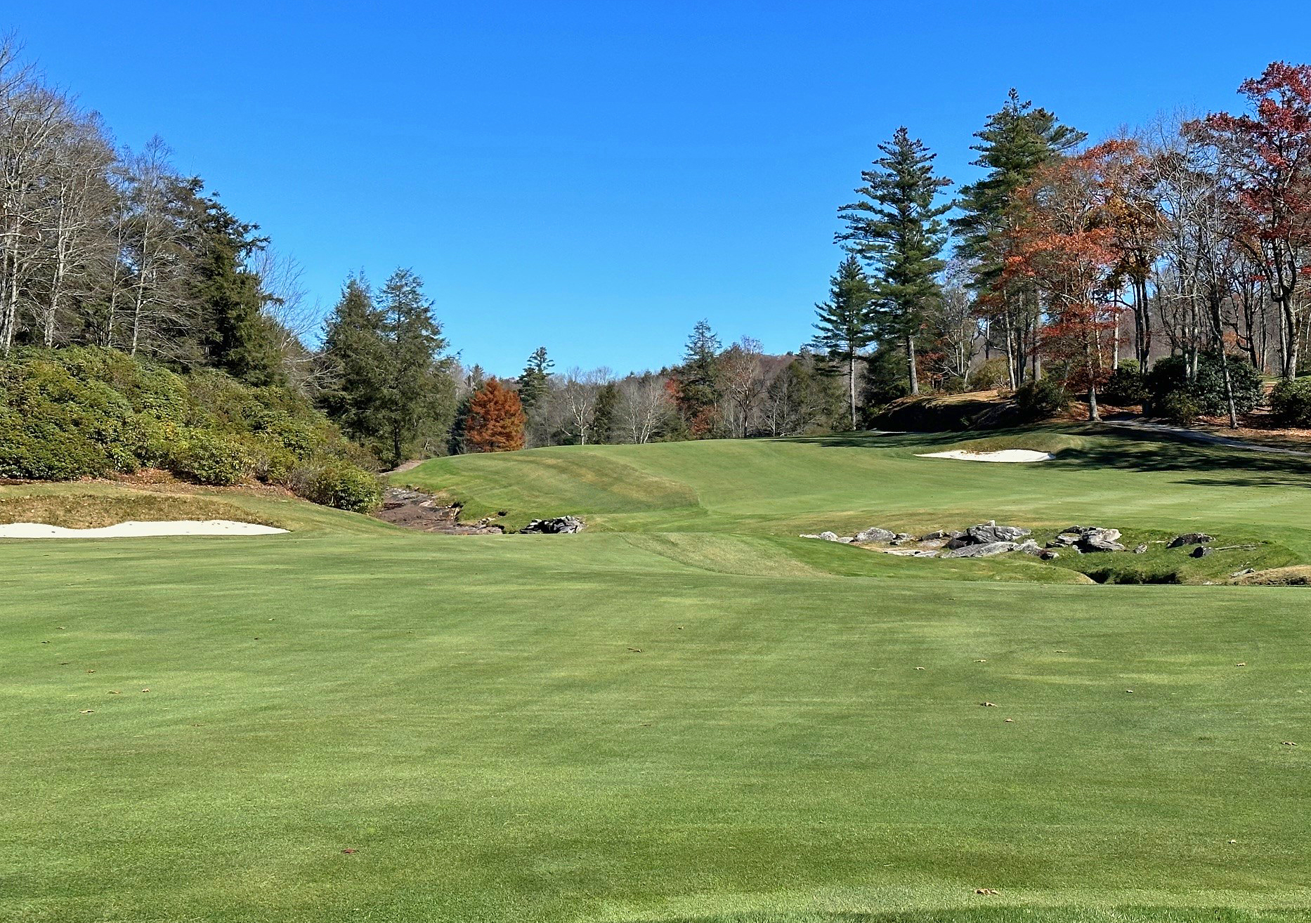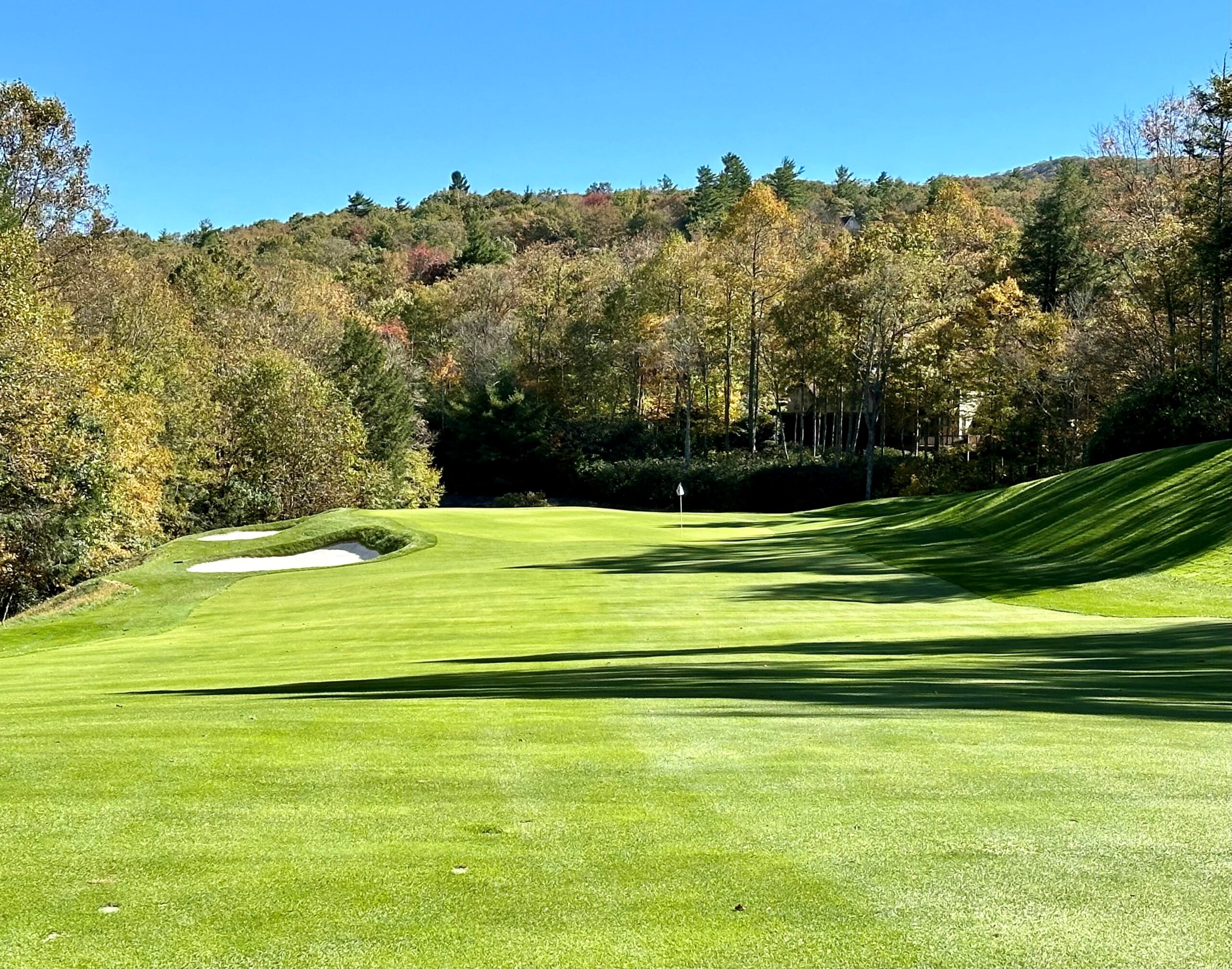 Converted from a par five to a par four, the sixth at Cullasaja lays out nicely in front of the player. By lowering the putting surface, the green became larger and more attainable on the approach. Its heavy contours were softened to add more usable hole locations. Clearing on the left side added width and improved sunlight and air circulation to the turf.