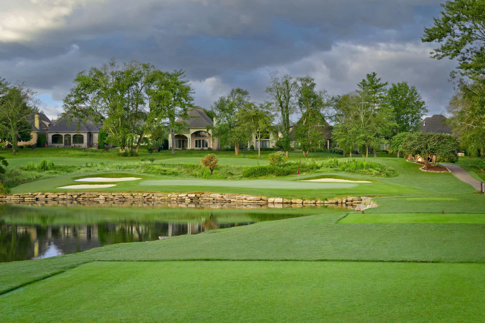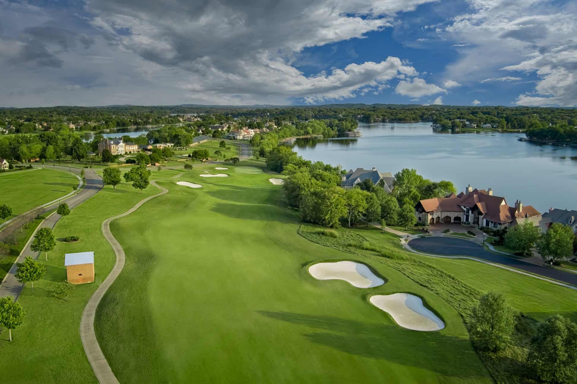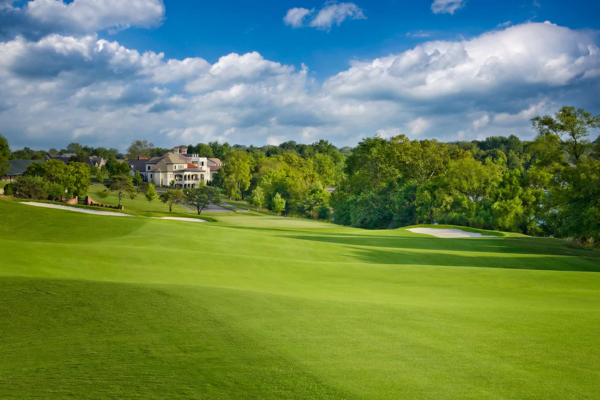 Playing alongside five thoroughbred birthing barns dating back to the mid 1800’s and ending next to Old Hickory Lake, the 18th hole on the Fairvue Course is unforgettable. The second shot plays downhill between a bevy of bunkers. It’s much more fun to be aggressive and end with excitement on this fine finisher.