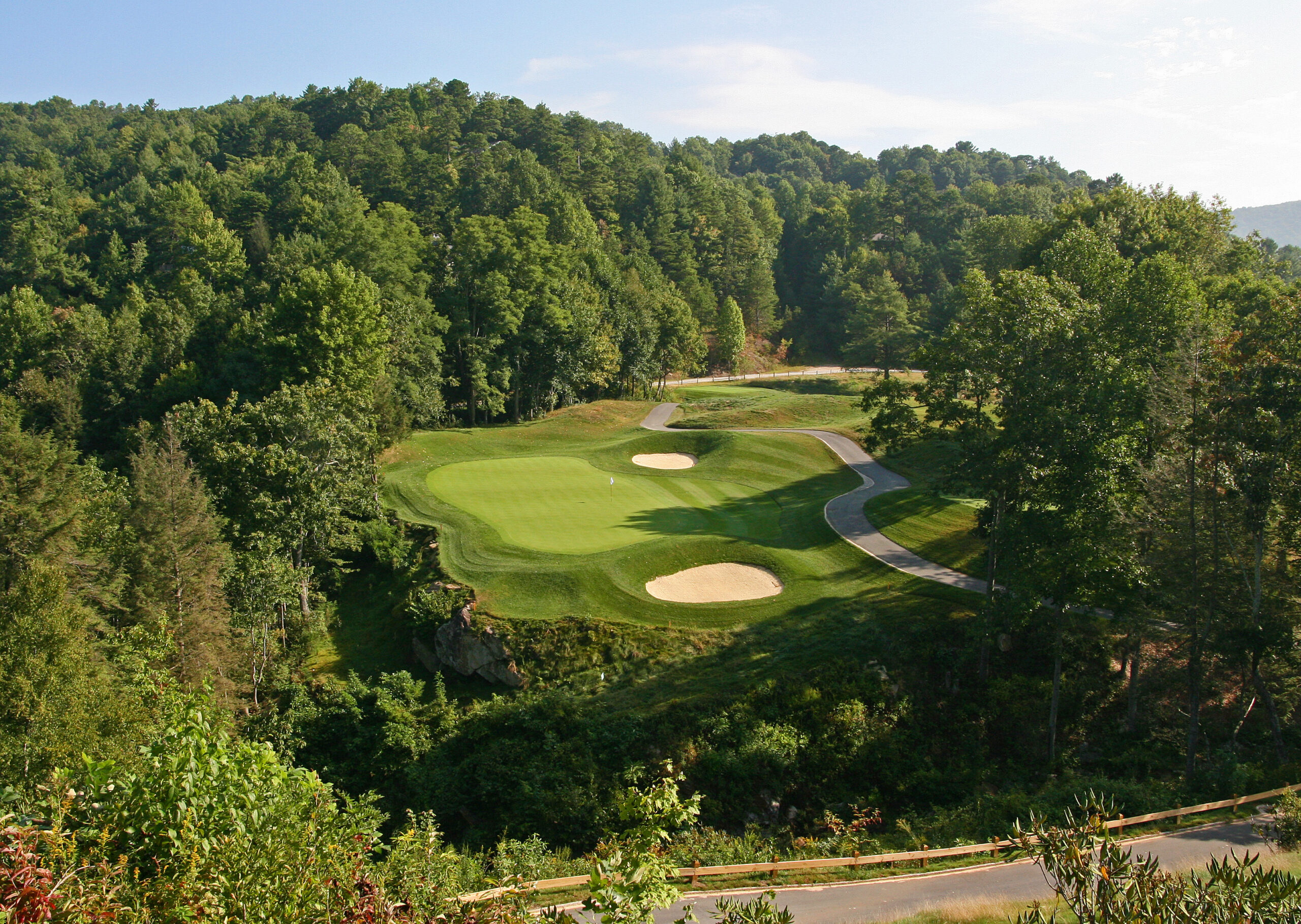 Set in a gorgeous valley with a twelve-acre lake as its centerpiece, Bergin Golf Designs completed a total transformation at Sky Valley, adding significant length, offering excellent shot values and greatly improving overall conditioning. Its front nine sits mostly in a valley, while the back nine has a more "mountain" flavor.