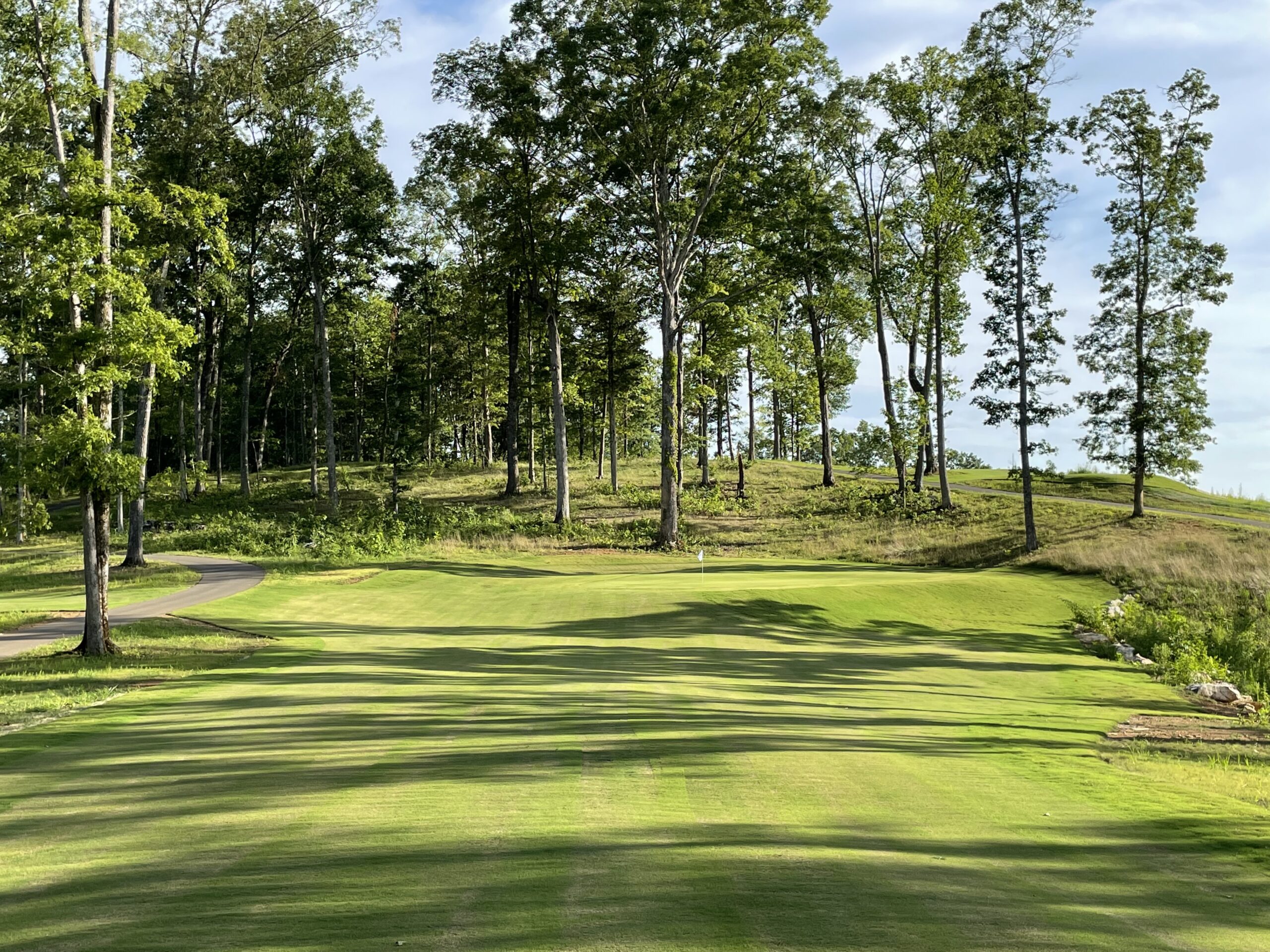 Perhaps our most fun-filled project, The Patch is a 12-hole Short Course with a full service practice facility. Located at The Preserve in Oak Ridge, TN, the Patch sits on a rocky bluff overlooking the Clinch River. Our featured hole is the 6th, as it plays across an old rock quarry.