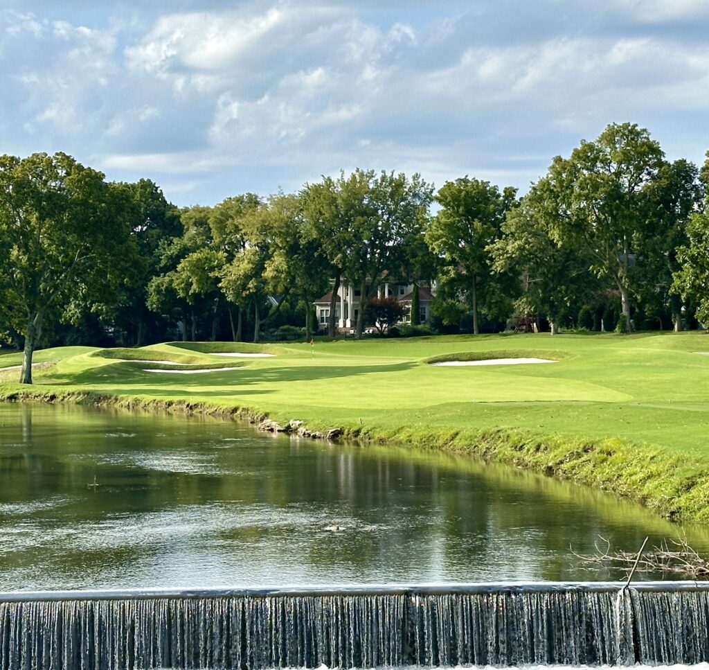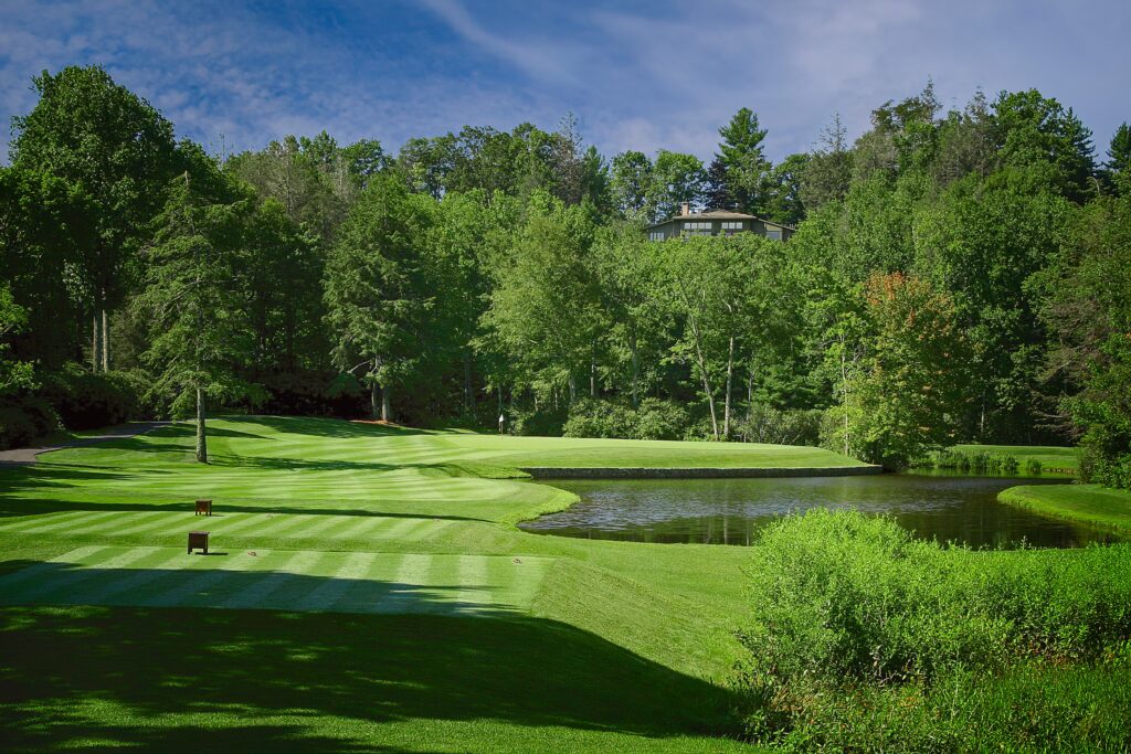 Originally the 9th hole, the new finishing hole offers a challenging approach and a fabulous view of the clubhouse. Tree removal and a new routing add to a fabulous vista across the course from the back area of the clubhouse.