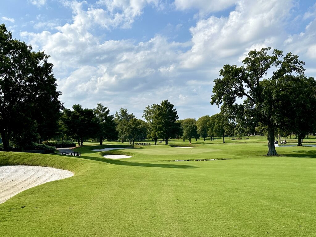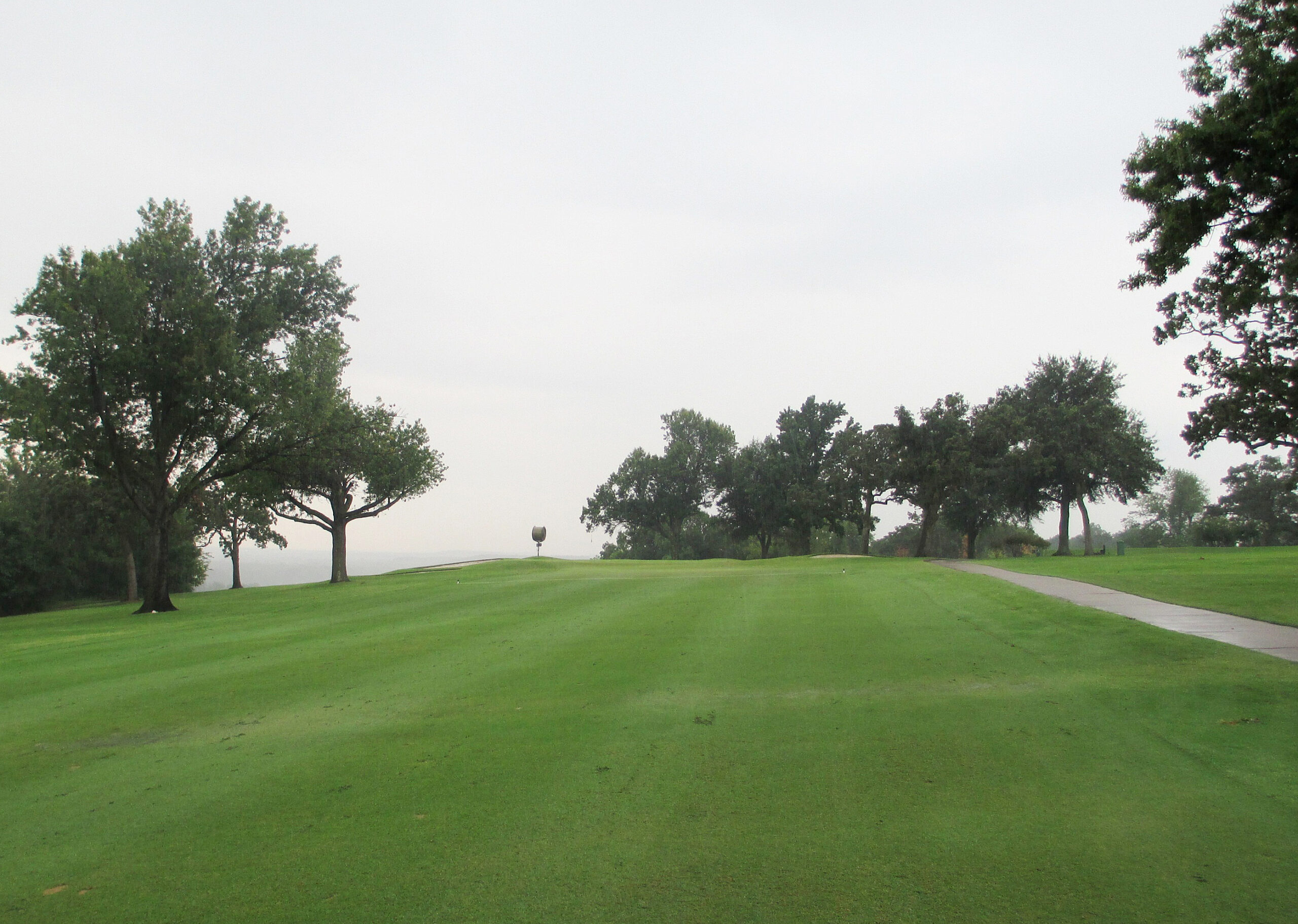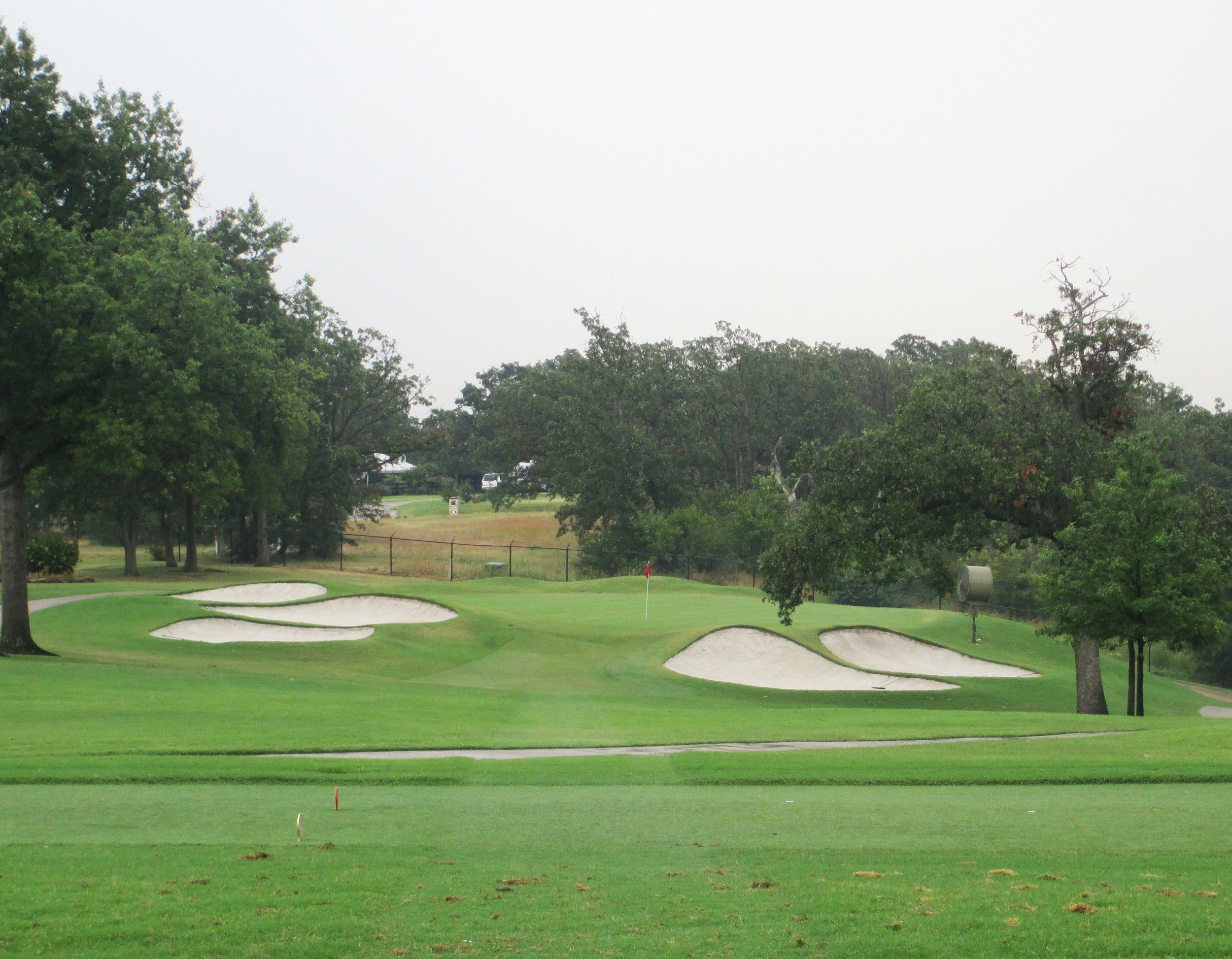 At first glance, this 130-yard par three might look like a simple pushover, but let those Oklahoma breezes get up and it’s another story. Well bunkered and demanding precision, the 6th hole at Oaks CC is a hole you just look forward to playing.