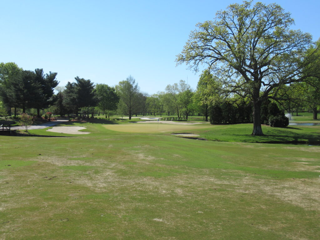 With a large oak hovering off the right edge of the putting surface, positioning from the tee is of utmost importance on the short 10th hole at Brentwood CC. Choosing a comfortable yardage and placing a tee shot near the fairway bunker make this a potential birdie hole.