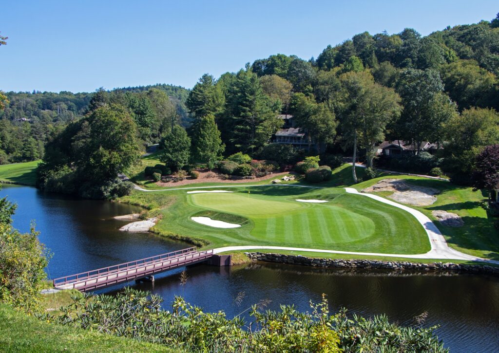 Formerly a par five with a limited second shot landing area, the 6th at Cullasaja has been converted into a long par four, trading length and par with the fifth. The putting surface has been redesigned and lowered to better handle the demands of a lengthy approach.