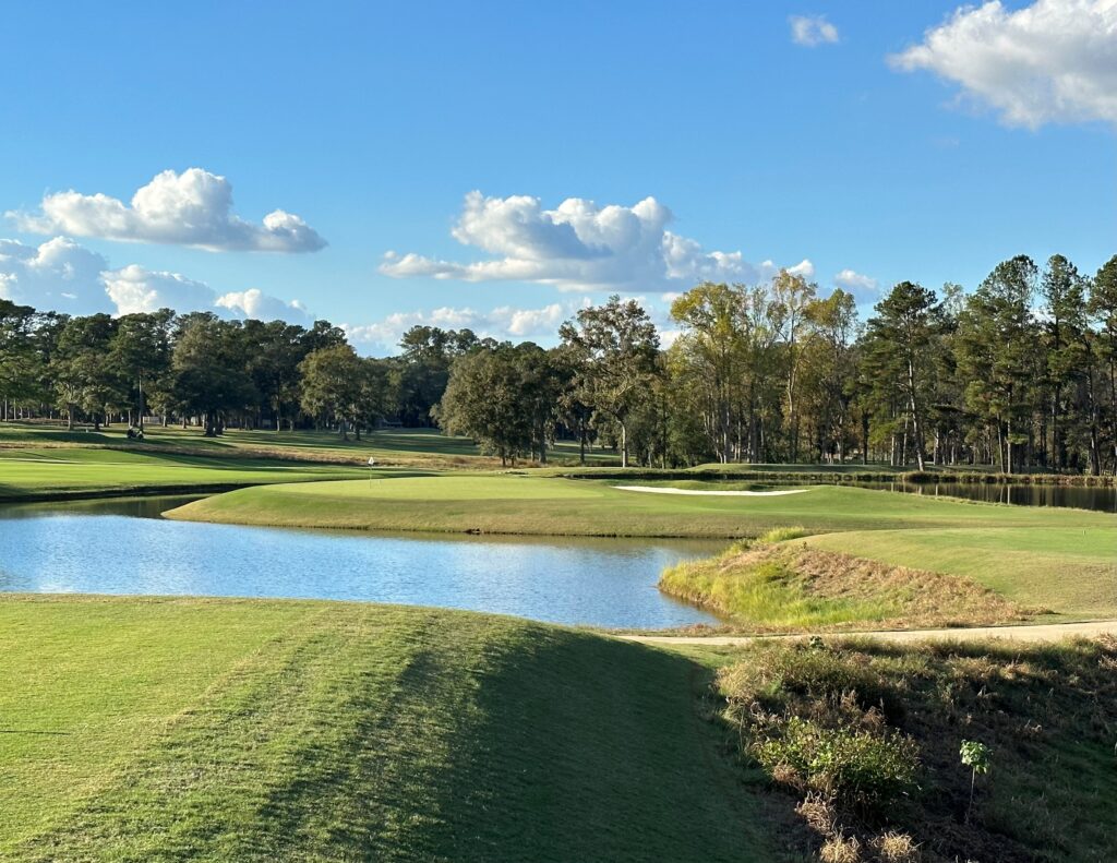 We will often push a putting surface closer to an edge or hazard when given the chance. The “island” 13th at Valdosta reflects that approach as the green shifted toward the pond, resulting in a wide safe zone short of the newly shaped bunker.
